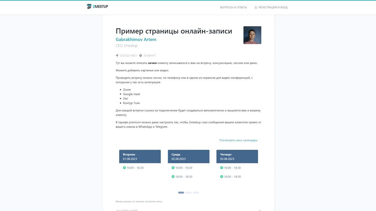 Заниматься в системе 2meetup просто – вы создаете ссылку, с помощью которой желающие видят свободное время для записи.