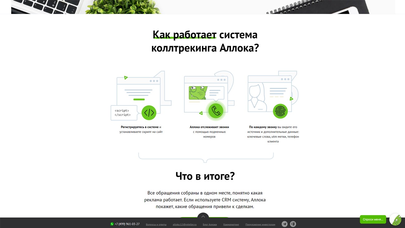 Благодаря сервису коллтрекинга Alloka вы сможете получить детальный анализ эффективности ваших рекламных кампаний, включая определение ключевых слов, которые приводят к звонкам. Это позволит оптимизировать ваш рекламный бюджет и использовать записи разговоров для обучения менеджеров, улучшения качества обслуживания и увеличения продаж. Все звонки с источником перехода на сайт, входящие звонки, формы на сайте, онлайн-консультант и callback-сервисы будут учтены, с точностью до рекламной кампании и ключевого слова.