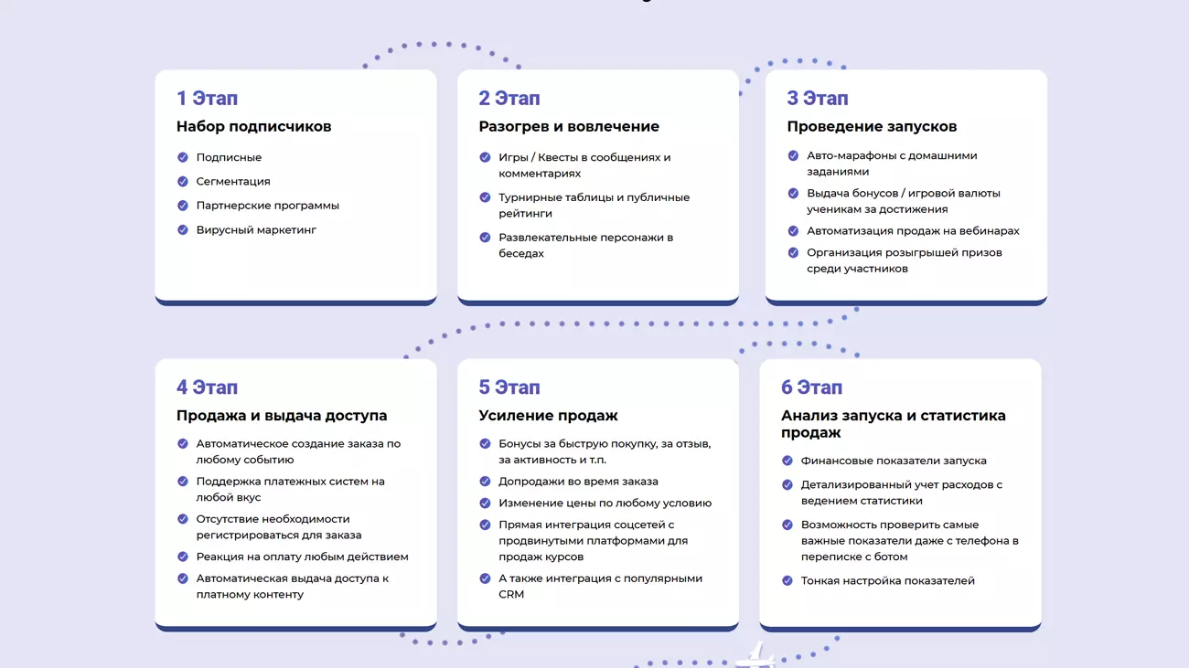 Autopilot.PRO предлагает полный цикл автоматизации: от набора аудитории до управления обучением. Вы можете создавать авто-марафоны, квесты, и мини-лендинги, принимать платежи и выдавать доступы к материалам. Геймификация стимулирует активность пользователей, а гибкие настройки адаптируются под уникальные бизнес-цели.