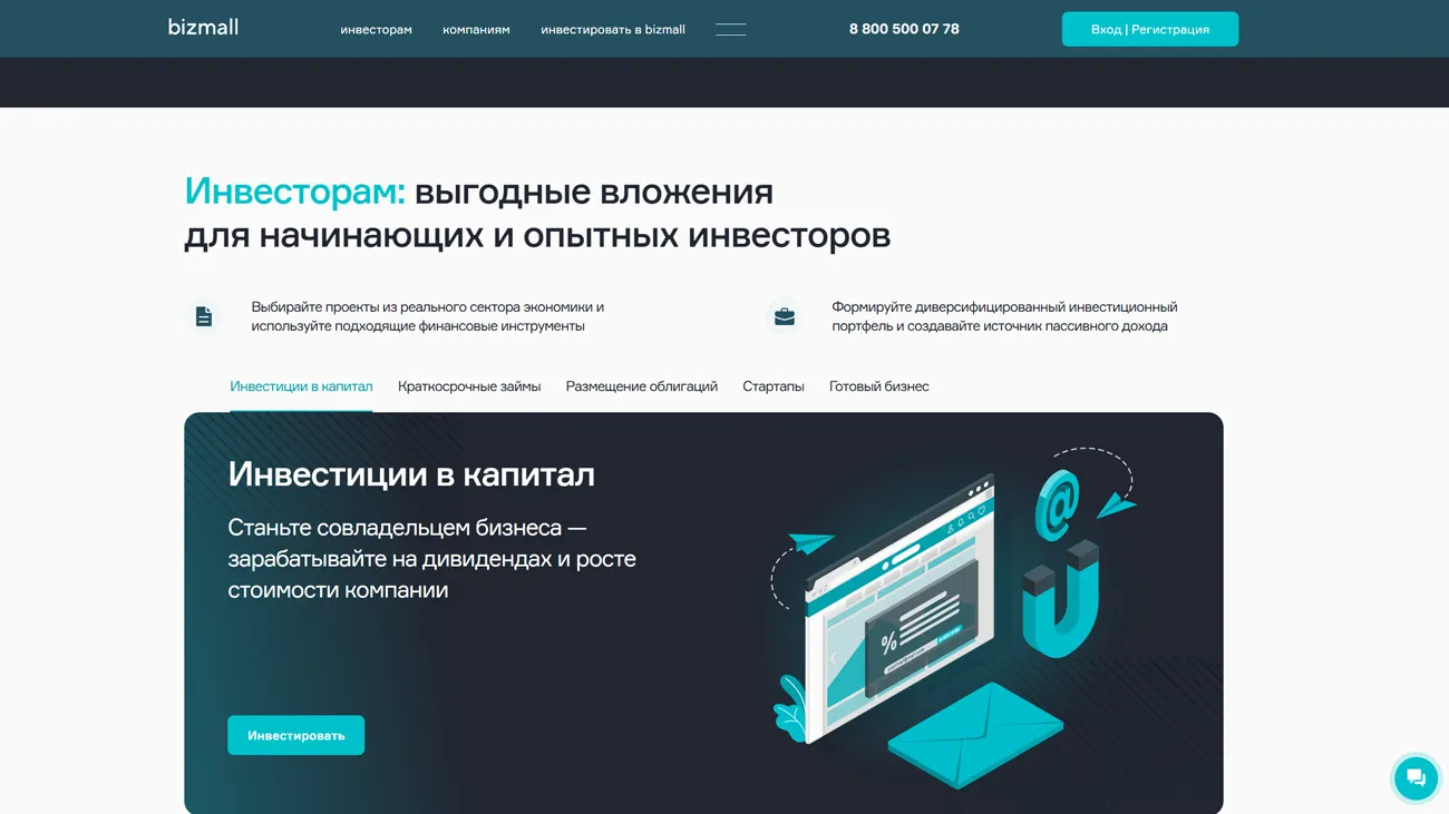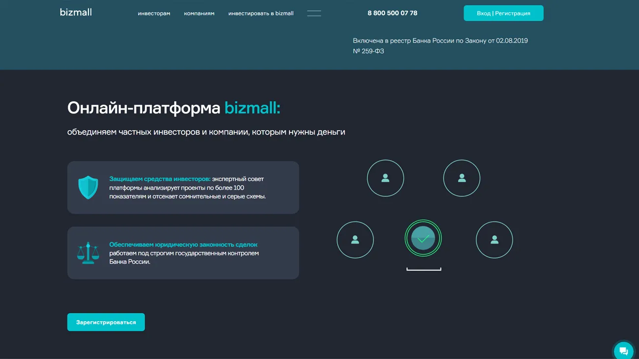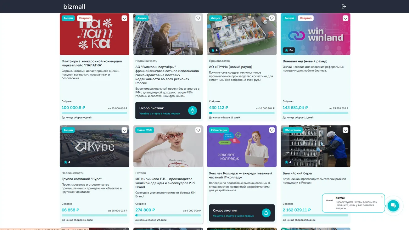 Платформа bizmall также предоставляет услуги по продаже готового бизнеса, проводя его технологическую и финансовую оценку, а также помогая найти покупателя