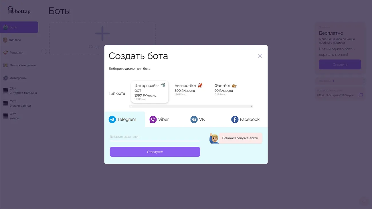 - Интуитивный визуальный редактор: Упрощает создание ботов за счет использования готовых блоков и сценариев.