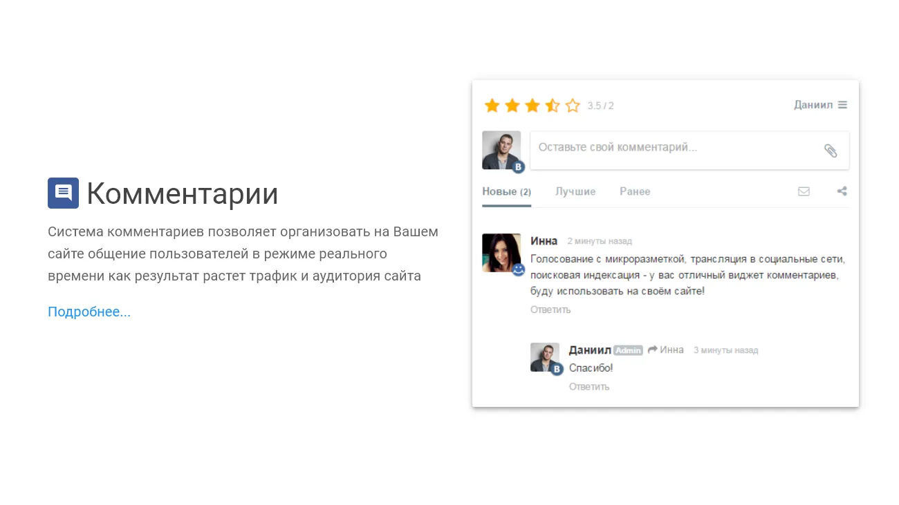 Cackle позволяет расместить на сайте форму для написания комментраиев и их вывод под постами непосредственно на страницах сайта.