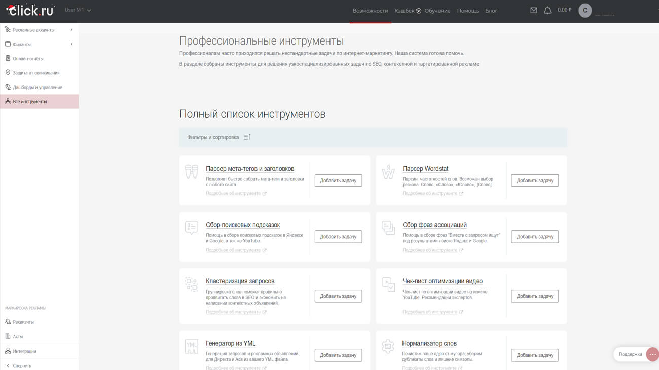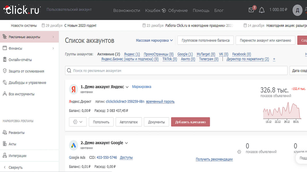 Сервис предоставляет возможность автоматизации работы с рекламой по принципу одного окна.