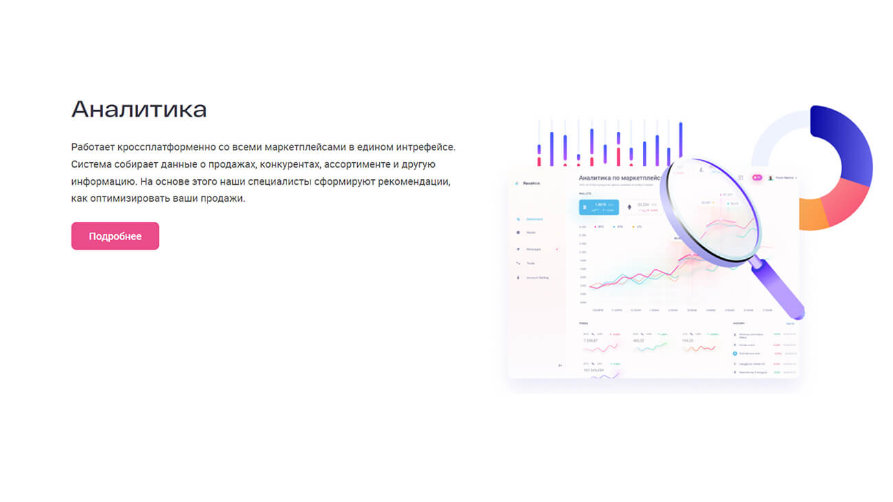 Благодаря подготовленным аналитическим отчетам принимаются правильные решения по необходимому улучшению продаж или заказываются подробные рекомендации у опытных профессионалов.