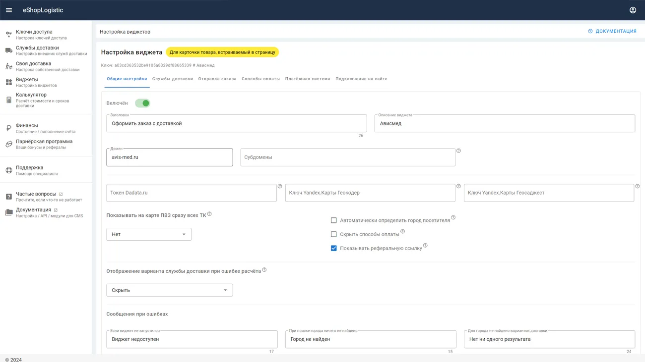 eShopLogistic предлагает виджет, представленный в виде информационного калькулятора. Он подходит для интернет-магазинов, которым не нужна связь с конкретными товарами и корзиной. Инструмент автоматически распознает город отправки и поставки, а также задаст параметры груза. Виджет кастомизируется под стиль сайта и встраивается на любой веб-ресурс.