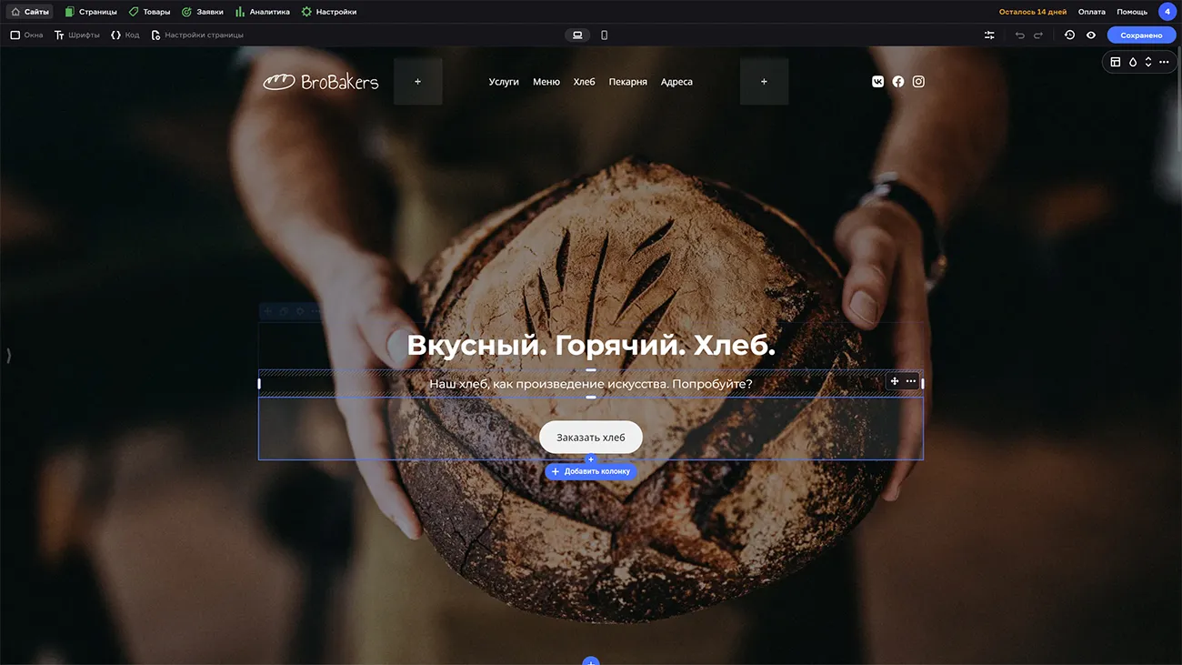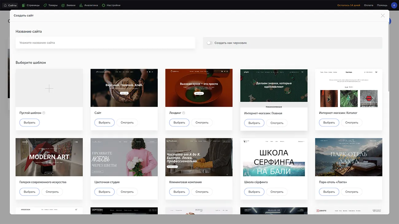 Для тестирования всего встроенного в конструктор сайтов функционала предлагается, пробный период на 14 дней, в течении которого нет ограничений в использовании платформы.