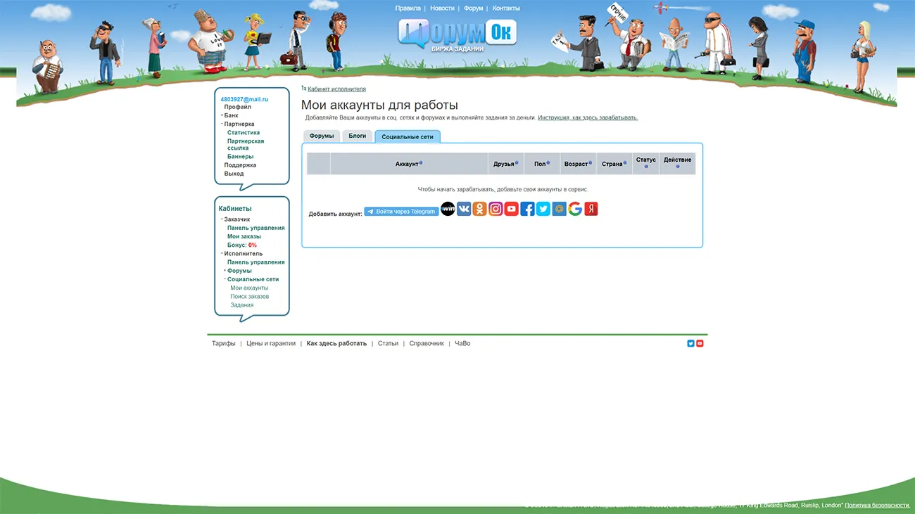 Площадка ФорумОК предоставляет возможность зарабатывать на своих аккаунтах в социальных сетях реальные деньги, которые можно вывести на счет. Достаточно добавить аккаунты в систему и пройти модерацию.
