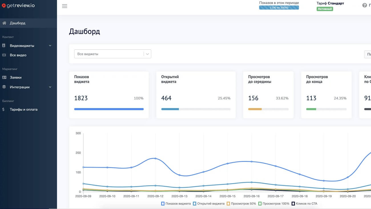 Особенности сервиса GetReview включают в себя возможность быстрой интеграции виджета с любой CMS, центр управления виджетами с интуитивным интерфейсом и аналитикой по просмотрам, досматриваемости, кликам и переходам. Виджеты также быстро загружаются, не влияя на скорость загрузки сайта.