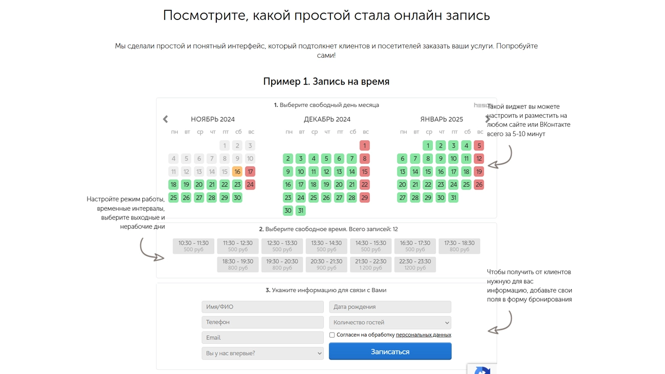 - Онлайн-оплата: Поддержка приема платежей и предоплат, что снижает вероятность отмен: