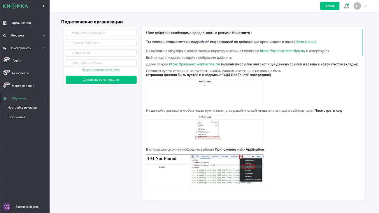 Кнопка имеет дополнительный инструмент для продвижения товаров на WB – аудит карточки.