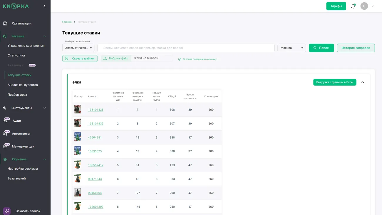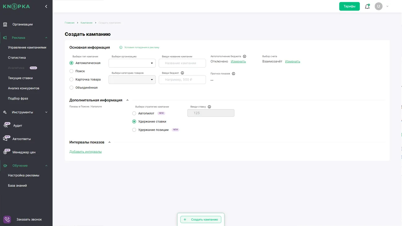 Инструмент направлен на привлечение покупателей за счет платного показа карточки товара. Сервис автоматически изменяет цену на рекламу в зависимости от выбранной стратегии. Это позволяет занимать лидирующие позиции и балансировать в ценообразовании.