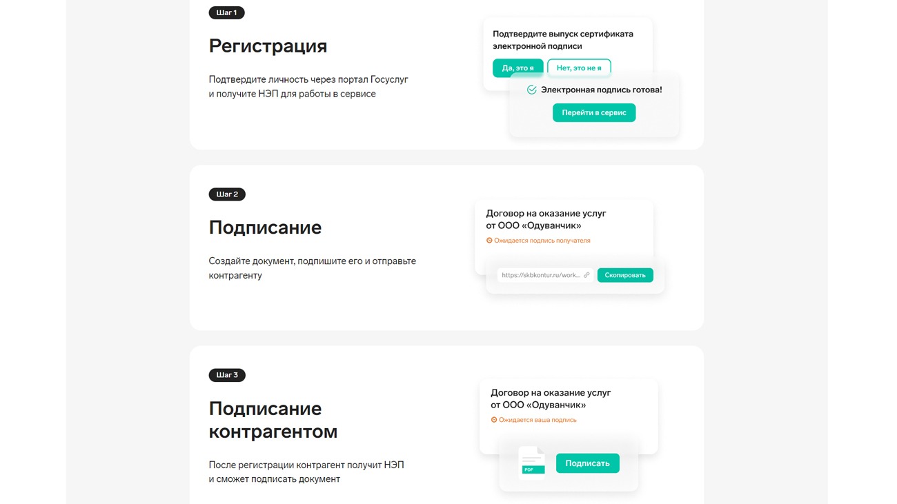 В целом, Контур.Сайн - это ценный инструмент для любой организации, которой необходимо управлять и обмениваться дукументами имеющими юридическую силу с физическими лицами и индивидуальными предпринимателями, предоставляя безопасный, удобный и эффективный способ сделать это.