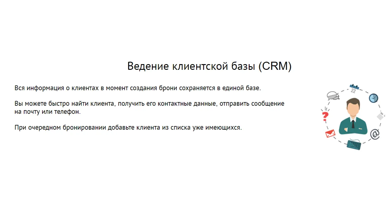 Предусмотрен специальный модуль, с помощью которого проводят онлайн-бронирование, помещаемый на сайт гостиницы или другого заведения, сдающего посуточно номера.