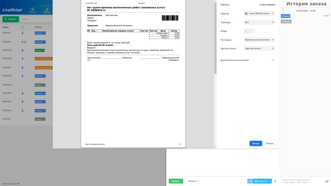 LiveSklad позволяет создавать индивидуальные шаблоны документов, таких как счета-фактуры, заказы, акты выполненных работ идругие документы, которые могут быть необходимы для бизнеса. Благодаря конструктору шаблонов, пользователи могут быстро создавать и настраивать документы в соответствии с требованиями своей компании. Возможность создания индивидуальных шаблонов позволяет заметно экономить время, затрачиваемое на создание документации, а также повысить ее качество и профессионализм.