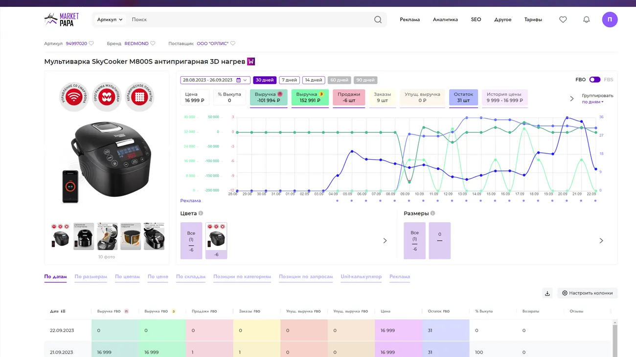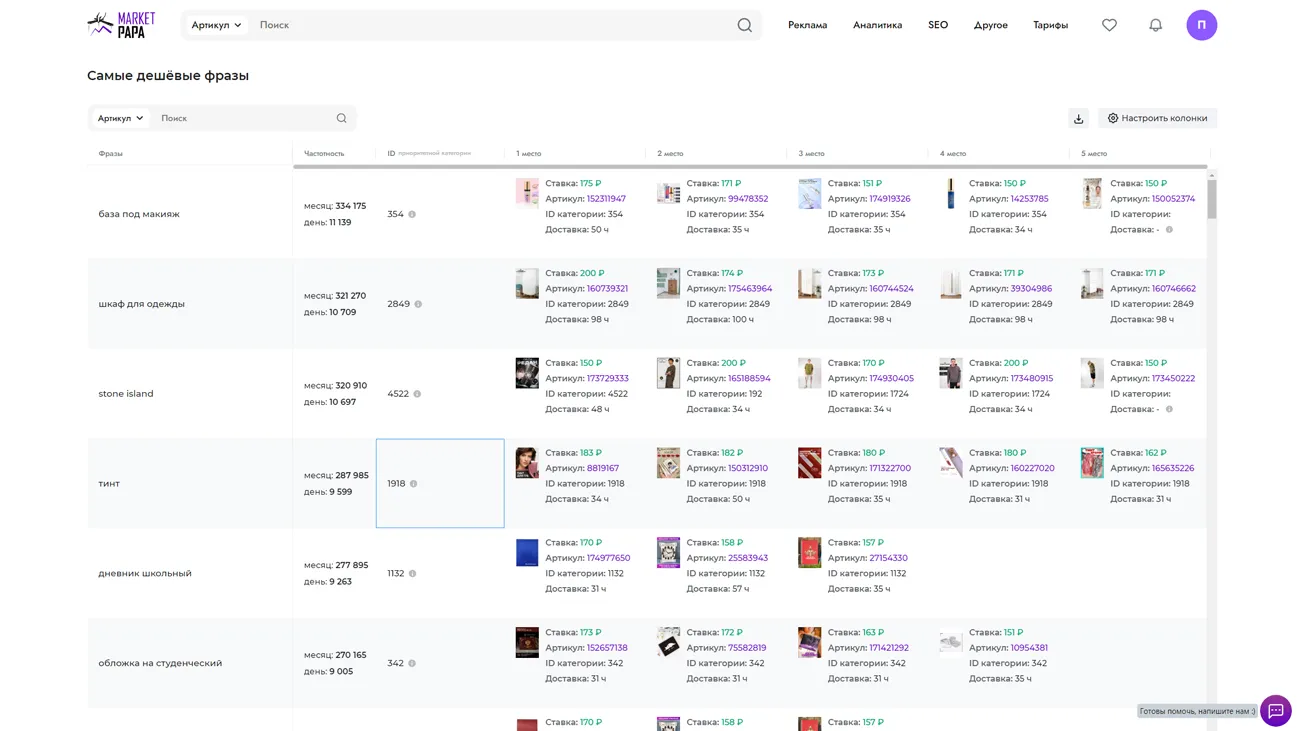 - Аналитика и мониторинг: Market Papa предоставляет обширные аналитические данные и возможность мониторинга конкурентов, что помогает принимать информированные решения.