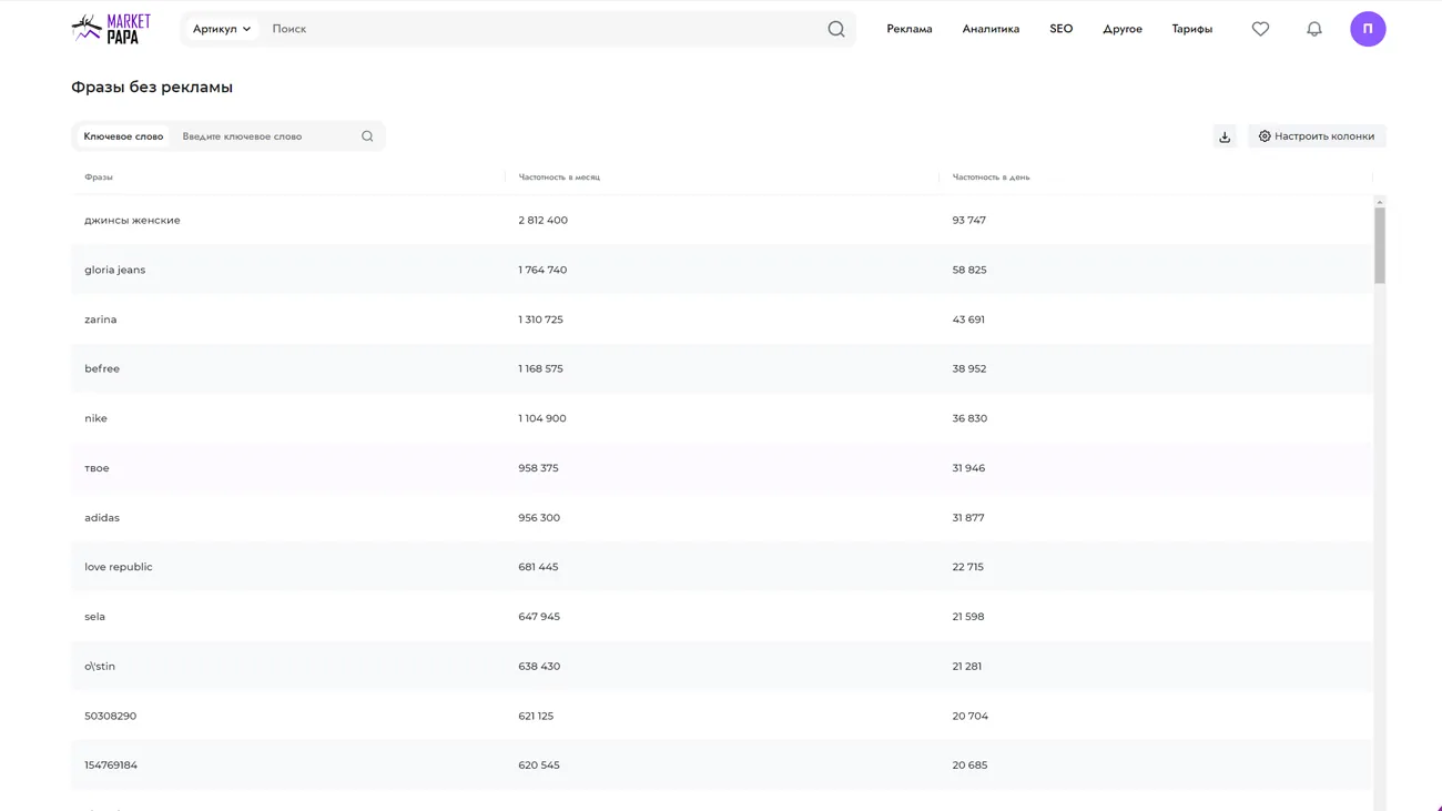 - SEO-оптимизация: Market Papa помогает оптимизировать рекламу и анализировать ключевые фразы конкурентов, что позволяет улучшить позиции в поисковой выдаче.