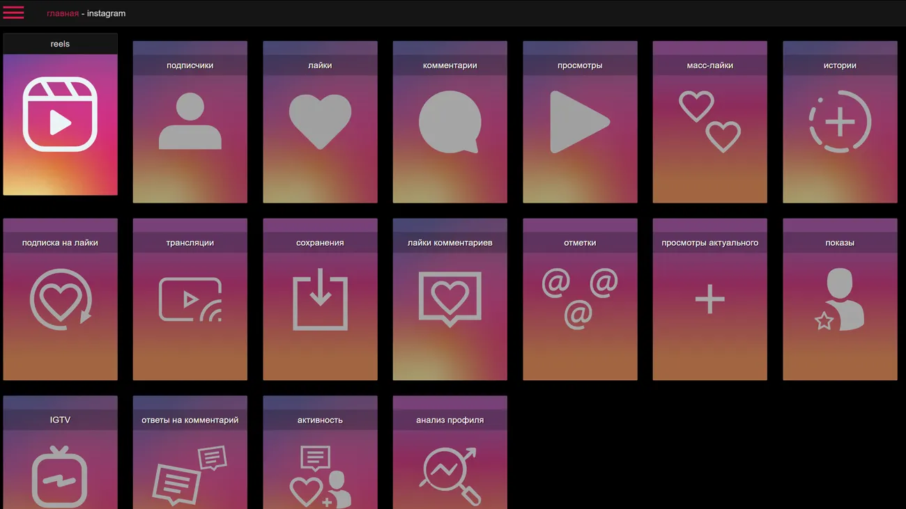 - Продвижение в соцсетях: Быстрое увеличение подписчиков, лайков и других показателей.