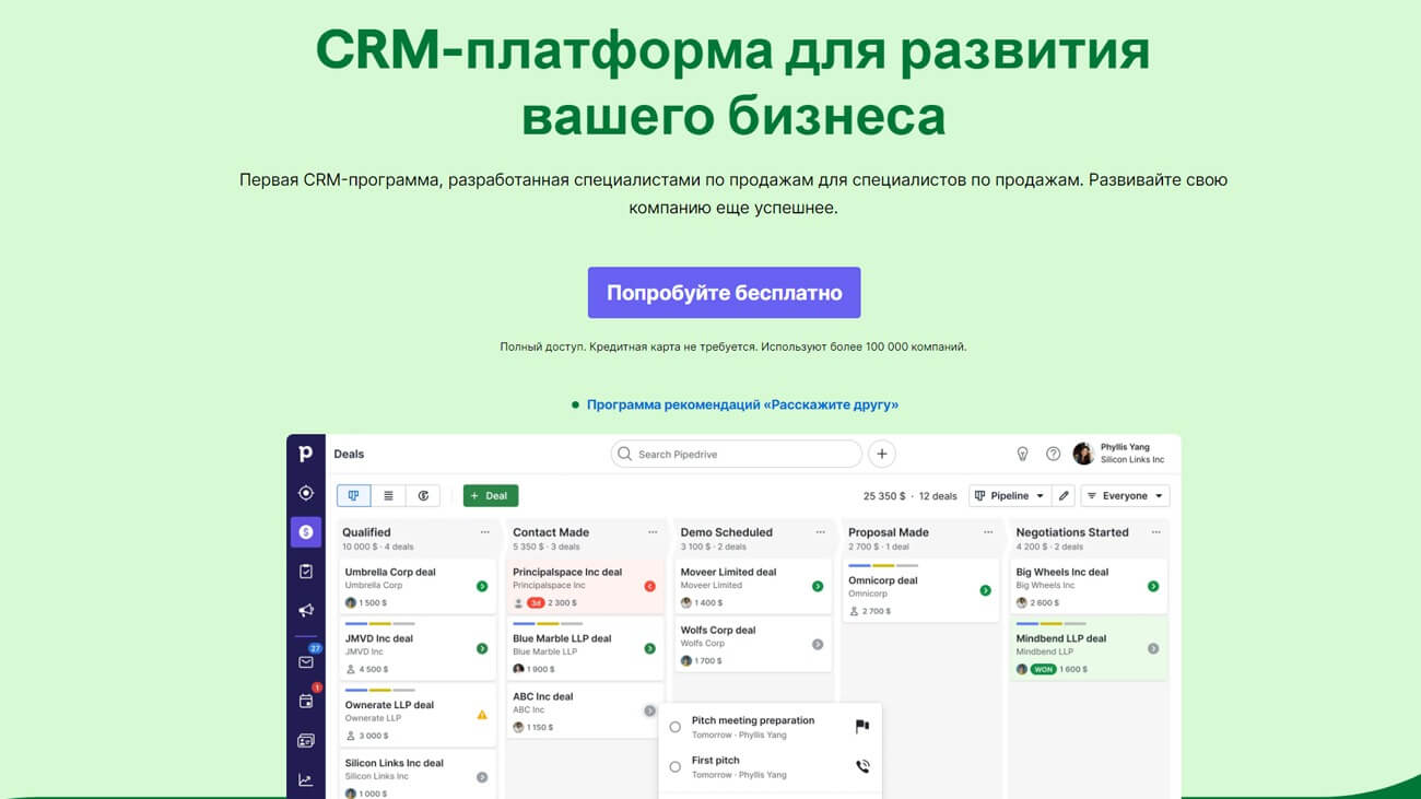 Принцип работы сервиса Pipedrive основывается на управлении продажами и улучшении процессов продаж с помощью системы управления клиентскими отношениями (CRM).