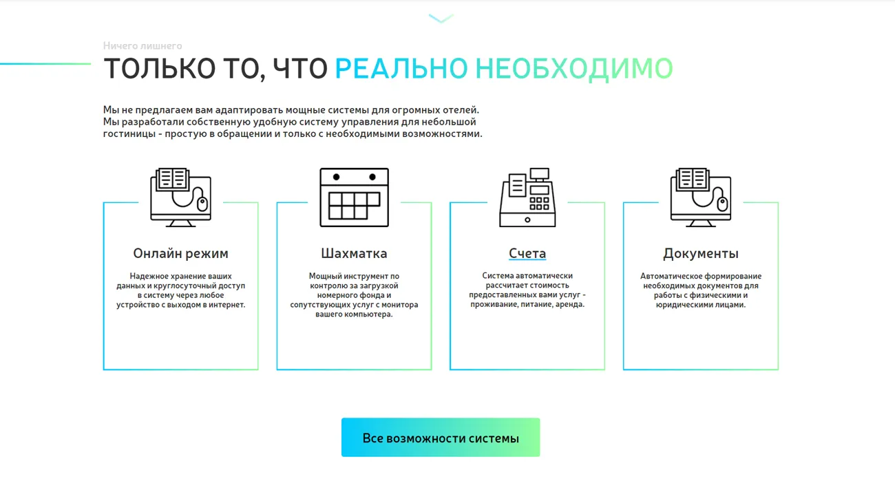 Программа позволяет создавать аккаунты для сотрудников, с возможностью редактирования уровней доступа. Тогда каждый пользователь может воспользоваться только тем разделом сервиса, который необходим для выполнения его профессиональных задач. Например, администратору будет доступна шахматка для создания заказа и контроля за номерами, а бухгалтеру - раздел с финансовой документацией.