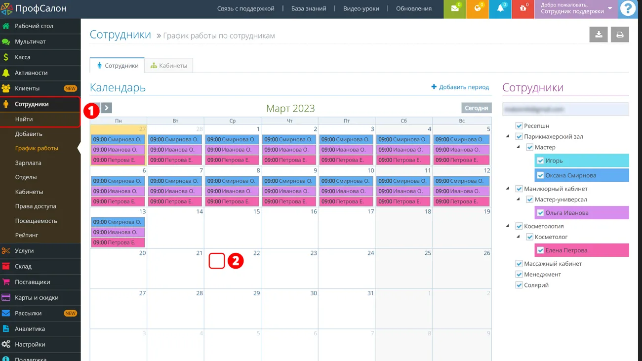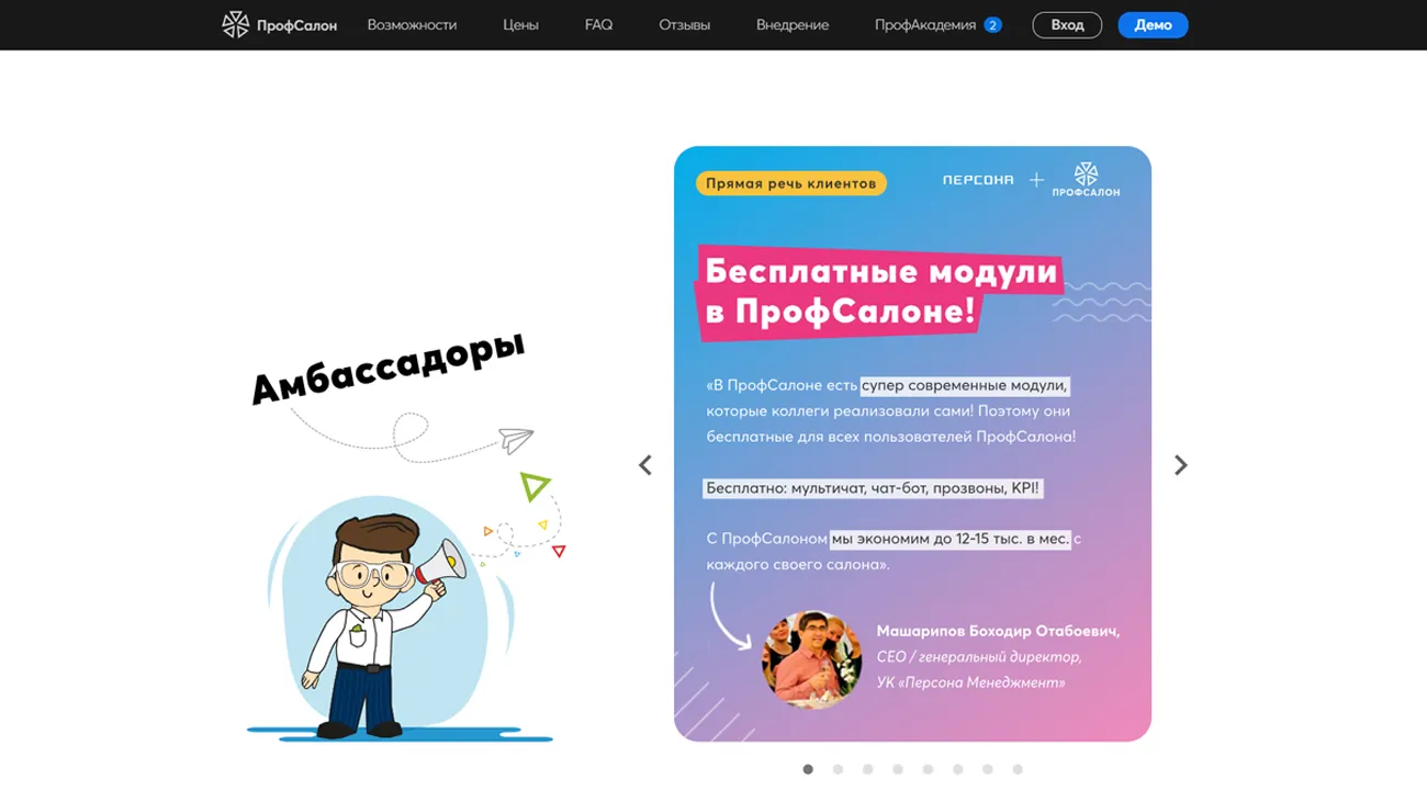 - Обучение сотрудников. Работники ПрофСалона обучают руководителей управлению платформой.