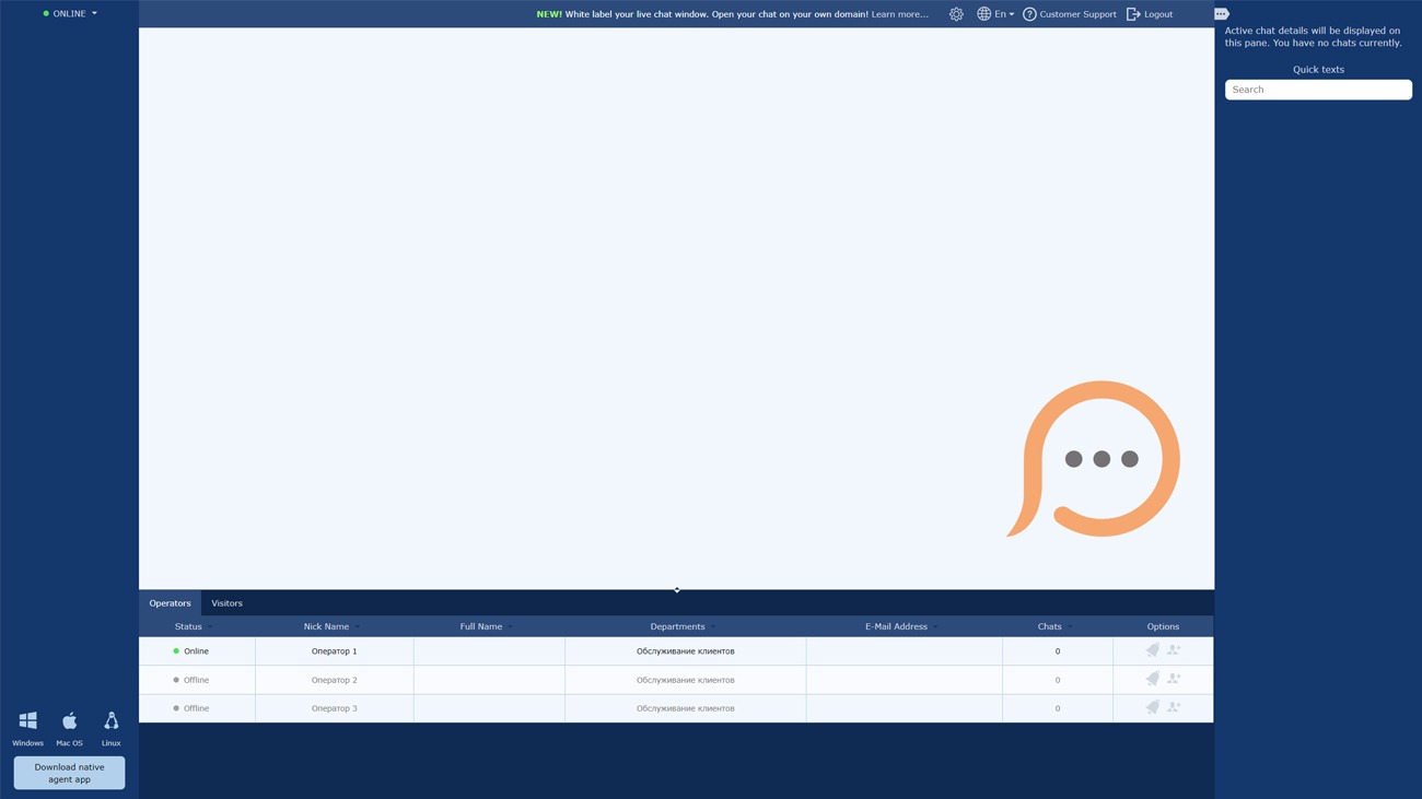 Принцип работы сервиса прост: после регистрации вы получаете уникальный код, который необходимо разместить на своем сайте. Когда посетитель заходит на ваш сайт, он видит окно чата и может начать общение с вами в любой момент. Вы же можете получать уведомления о новых сообщениях в режиме реального времени и отвечать на них через интерфейс веб-приложения.