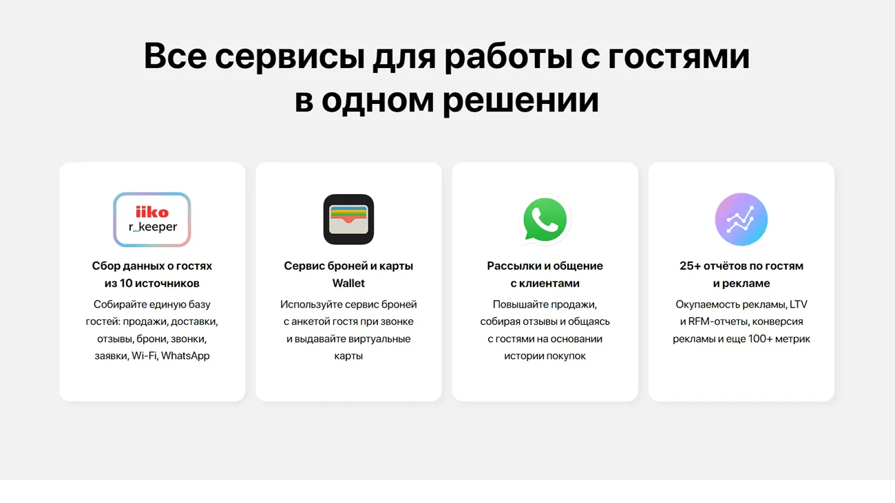 Принцип работы Remarked CRM основан на сборе и анализе данных о гостях из разных источников, включая продажи, доставки, отзывы, бронирования, звонки, заявки, Wi-Fi, WhatsApp и другие. Вся эта информация собирается в единую базу данных гостей, что позволяет вам лучше понять предпочтения и поведение своих клиентов.