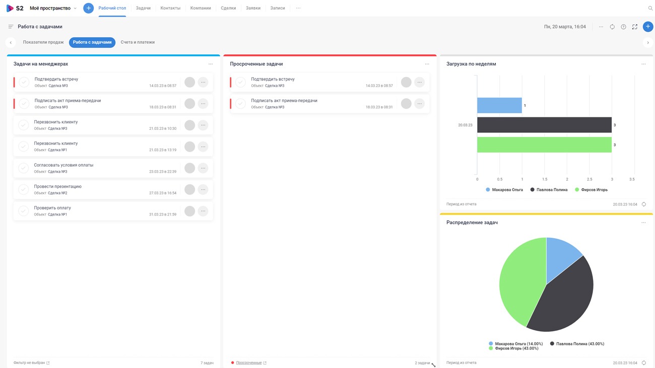 S2 CRM обеспечивает порядок в процессах, что приводит к росту ключевых показателей. Система позволяет контролировать процессы взаимодействия с клиентами, управлять кампаниями и анализировать результаты. Это позволяет компаниям принимать более обоснованные управленческие решения и оптимизировать бизнес-процессы.