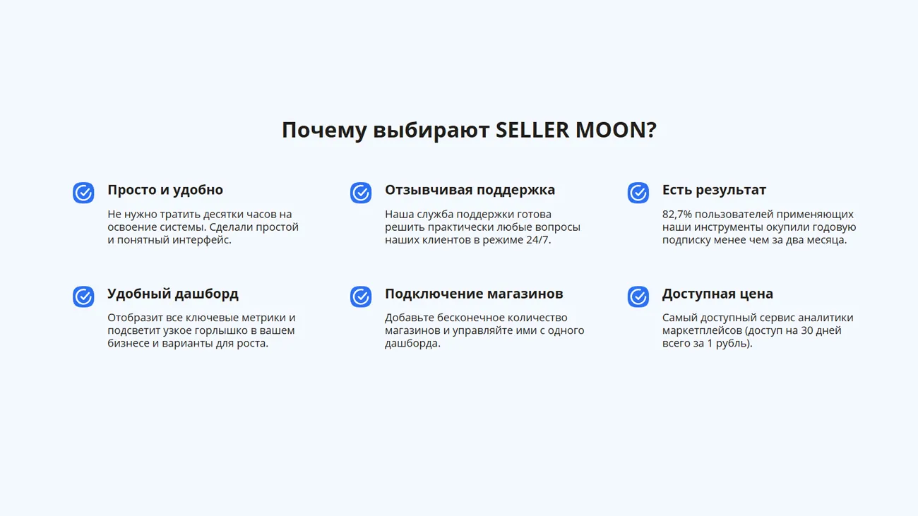 Seller Moon — это отличное решение для продавцов на маркетплейсах, стремящихся увеличить свои продажи и прибыль.