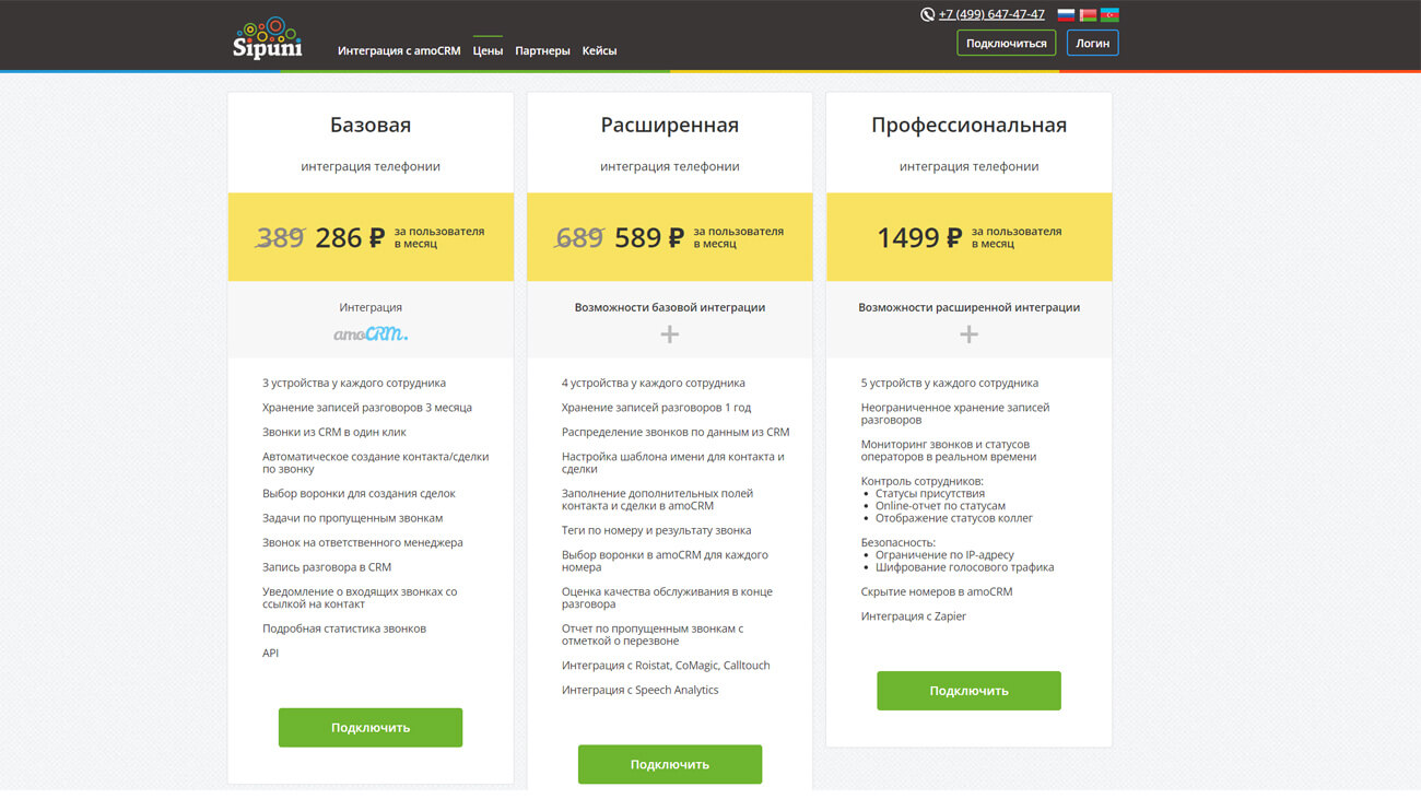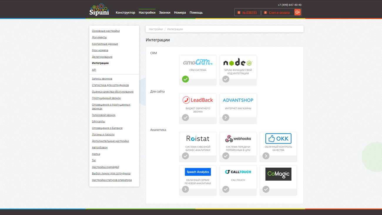 Профессиональный инструмент Sipuni используется для развёртывания АТС любого масштаба. Он интегрируется с amoCRM, Битрикс24, retailCRM, PipeDrive, Мегаплан, 1С. В результате созданная единая система позволяет пользователям зарабатывать гораздо больше.