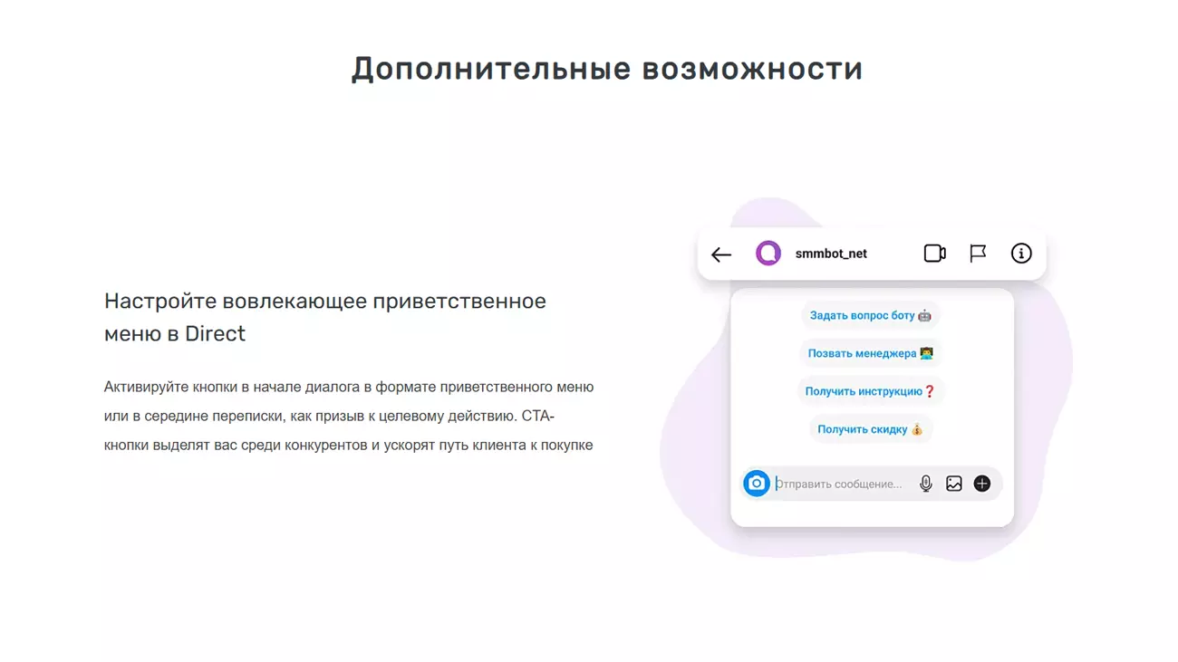 Попробуйте SMMBOT бесплатно и получите 100 диалогов чат-бота в Инстаграм.