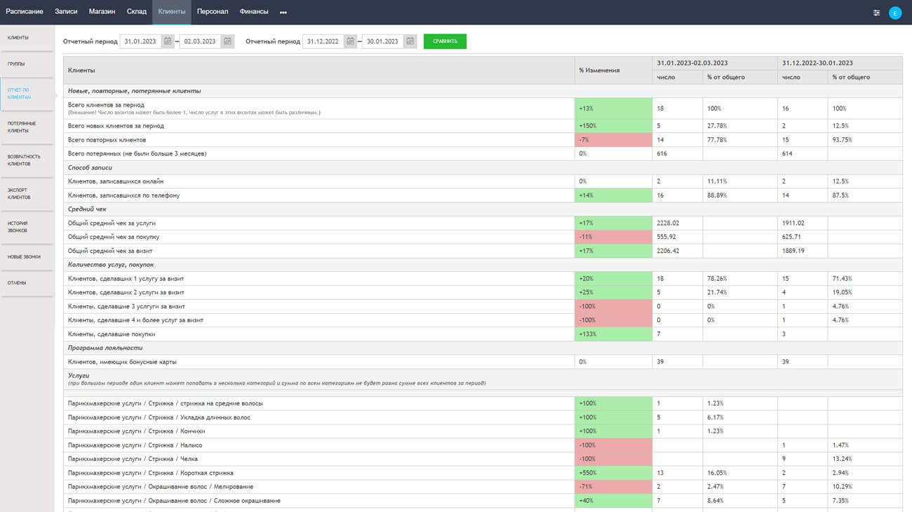 - Статистика и аналитика: отчеты о продажах, прибыли, оценки эффективности персонала, отслеживание клиентской активности и другие инструменты аналитики.