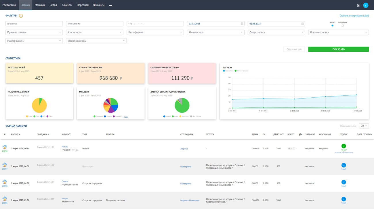 - Сетевые решения: возможность управления несколькими салонами красоты через один аккаунт.