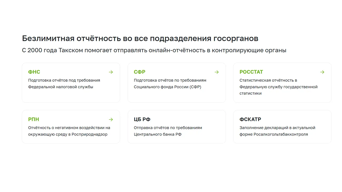 Сервис "Такском Отчетность" оптимально подходит для бизнеса, который хочет автоматизировать процесс подачи отчетности, минимизировать риски ошибок и получать качественную поддержку на всех этапах взаимодействия с государственными органами.