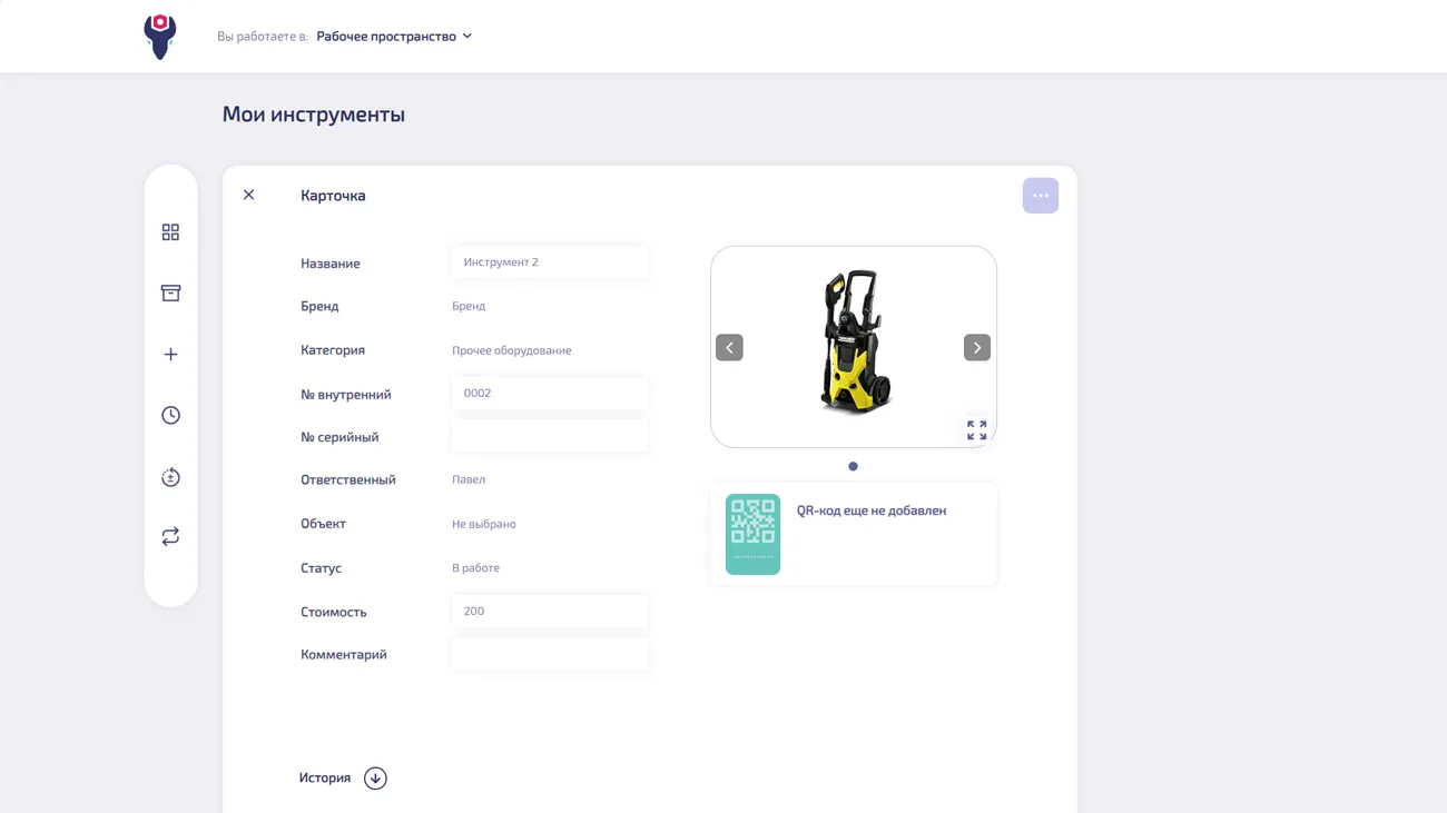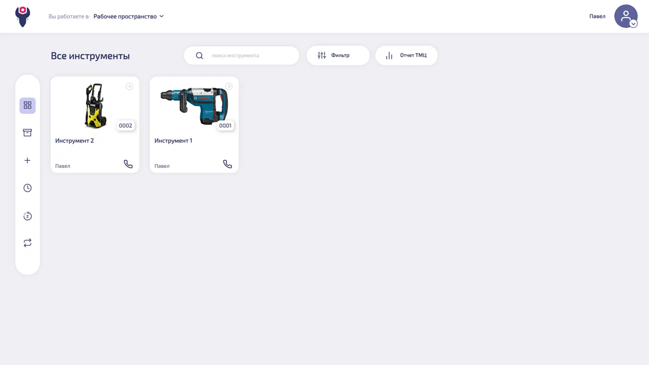 Персоналу доступна мобильная версия, с помощью которой можно получить информацию о месте нахождения необходимого инструмента и приложение фотоотчета при поломке.