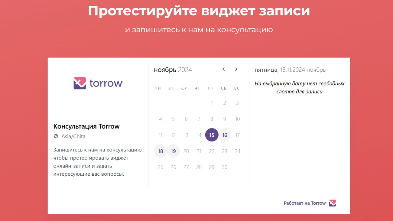 Сервис создан для стартапов и малого бизнеса, упрощая переход к цифровым решениям. С помощью Torrow можно настроить услуги онлайн-бронирования, аренды и проката, организовать прием заявок или запустить интернет-магазин. Для быстрого старта доступны шаблоны, адаптированные под разные бизнес-направления.