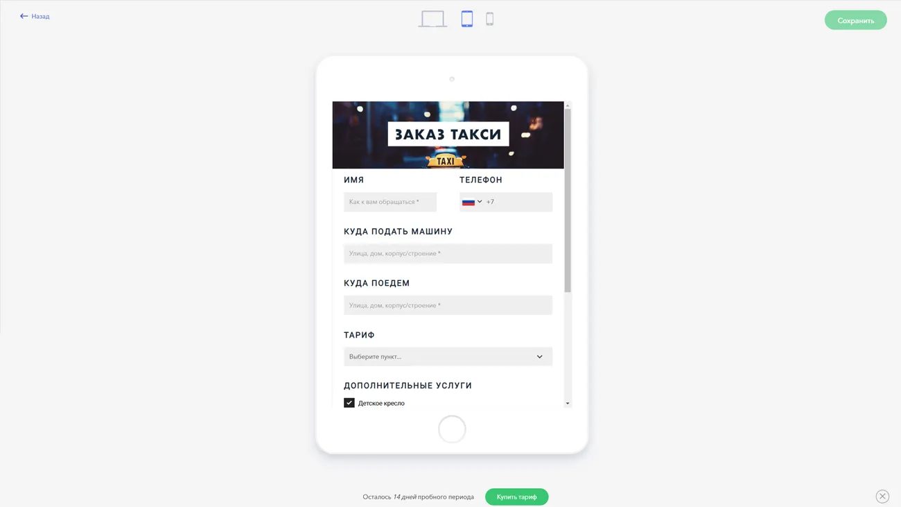 Элементы формы и калькулятора органично отображаются на любых устройствах, благодаря автоматическому подстраиванию под разрешения экрана. Предусмотрена привязка изображений к флажкам или галочкам. В текст формы можно добавить кликабельную ссылку или кнопку для перехода по на сторонний ресурс.