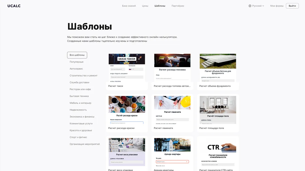 uCals предлагает создание калькулятора любой сложности из набора доступных инструментов, включая математические формулы. Готовый калькулятор можно установить на любую страницу веб-ресурса в виде html-кода, а для большинства популярных конструкторов сайтов и CMS, предусмотрены плагины.