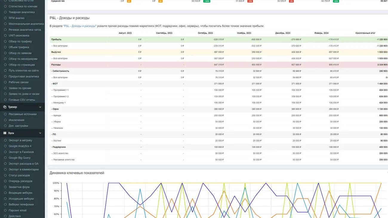 UTMSTAT предлагает несколько инструментов для анализа слабых мест бизнеса, благодаря которым снижается прибыль.