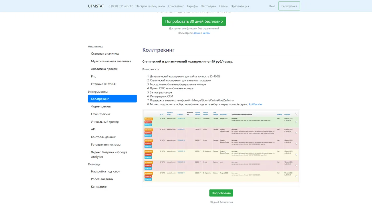 UTMSTAT предлагает городские, мобильные и федеральные номера для телефонов.