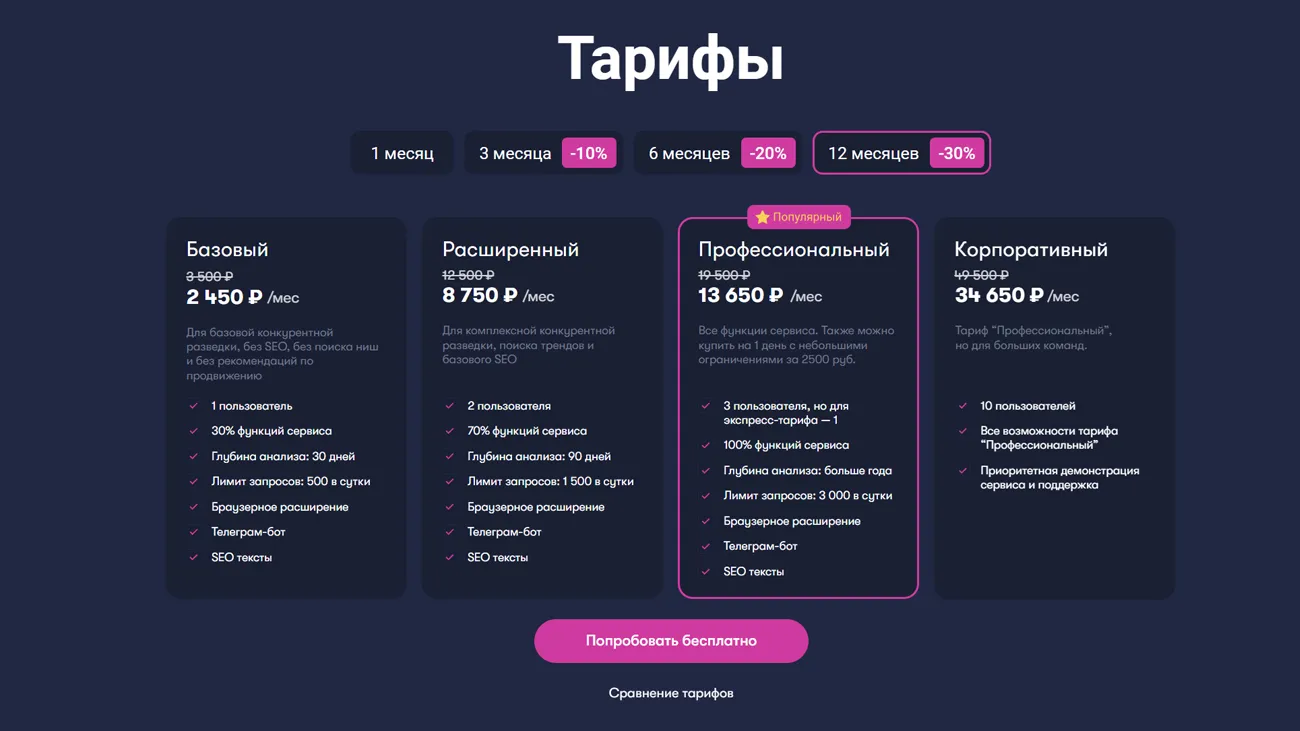 Доступные планы для малого бизнеса и крупных компаний.