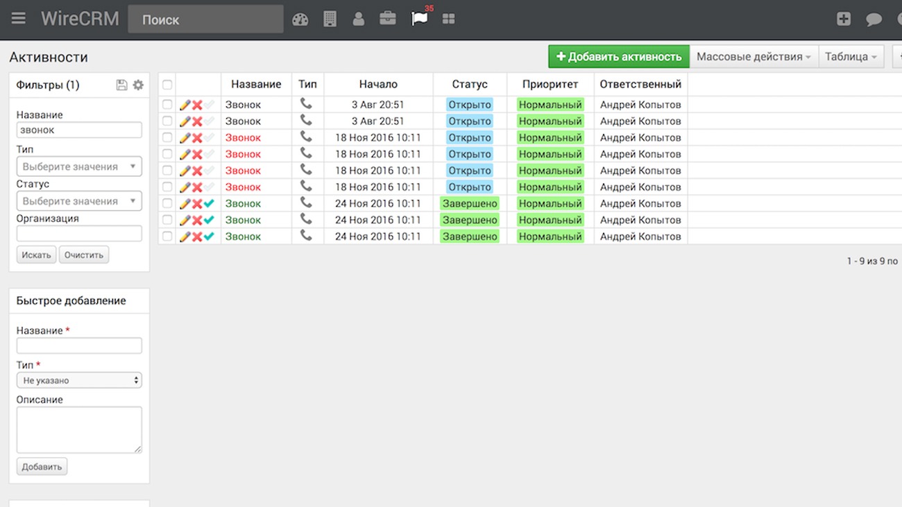 Wire CRM - это надежный и мощный инструмент, который поможет бизнесам управлять своими клиентскими отношениями и развиваться. Попробуйте WireCRM в деле и убедитесь в его эффективности.