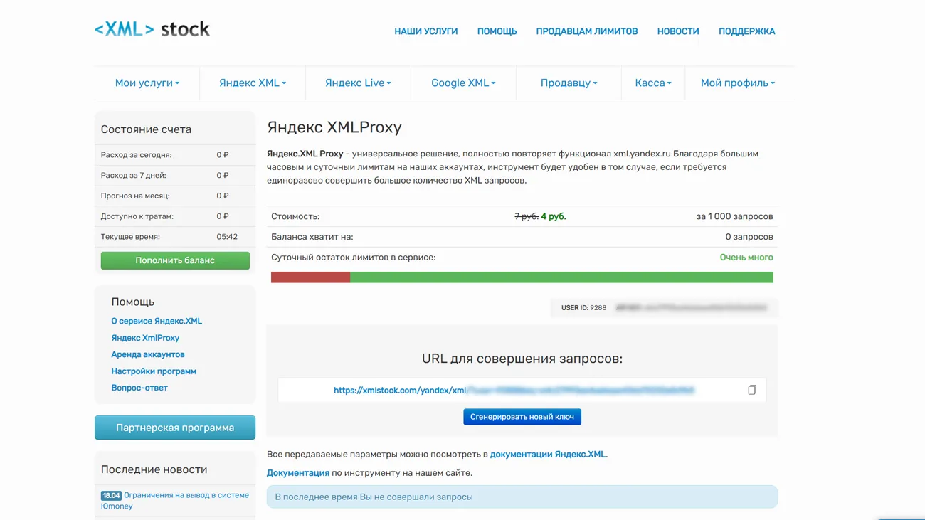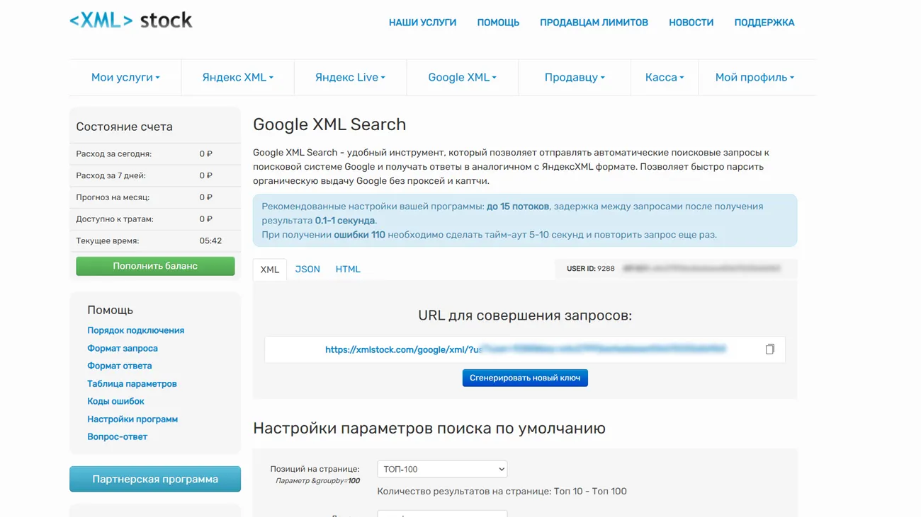Цена сервиса: 10 рублей за 1 000 запросов.